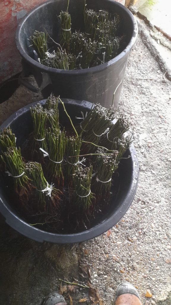 Fin avril, nous sommes partis en Alentejo au Domaine das Aromaticas de Carlos Nogueira, notre hôte de janvier 2022. Nous accompagnions Gisèle et Alain Tschanz rosiériste émérites pour assurer la greffe de 1500 porte-greffes.
