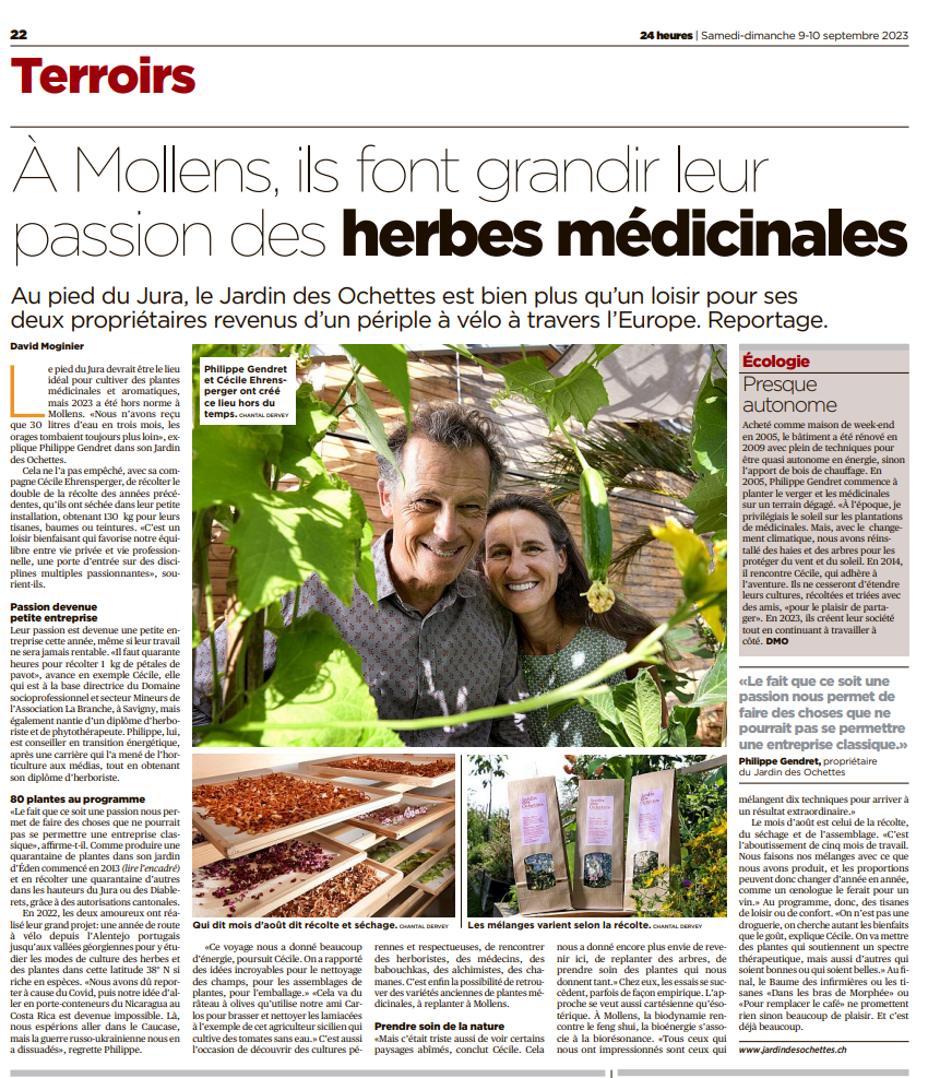 Merci à David Moginier, pilier de la rubrique Terroir de 24heures pour son sympathique article qui résume bien nos préoccupations… et occupations.