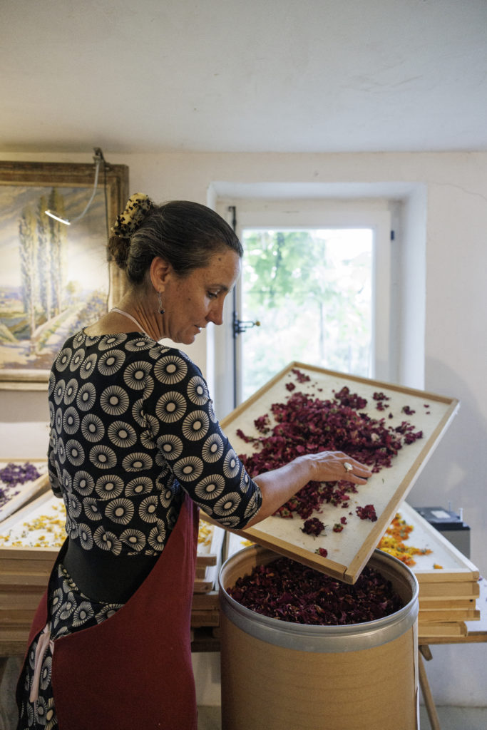 Passionné par les plantes, les fleurs, la botanique et la récolte de plantes sauvages. Nous aimons aussi cultiver des plantes adaptées à notre climat, que l’on ne trouve plus dans la nature et qui permettent de soulager, de traiter les petits aléas de la vie quotidienne. Notre activité débute en mars avec la cueillette des premiers tussilages indispensables aux mélanges dédiés aux maladies respiratoires, puis nous accumulons une cinquantaine de variétés tout au long du printemps et de l’été. Fin août, nous procédons aux assemblages en fonction des quantités et des qualités récoltées. c’est le moment magique où 5 mois de travail nous donnent un résultat souvent surprenant en termes de goût, d’esthétique et surtout thérapeutique. Les plantes sont déshumidifiées dans un séchoir, généralement pendant une semaine, sans soufflerie ni travail mécanique. Nous réduisons au maximum les structures séchées afin de préserver toutes les huiles essentielles contenues dans les feuilles et les fleurs, ce qui permet d’obtenir un mélange de tisanes assez grossier qui conserve ses odeurs et son efficacité lors de l’infusion. Nous privilégions délibérément la qualité et l’efficacité en évitant une jolie granulométrie qui finit souvent en poussière sans propriétés. Les plantes proviennent de notre jardin sans aucun ajout de produit. Nous fabriquons nos propres engrais à base d’extraits fermentés, dans une partie du Jura relativement préservée du monde agricole chimique.